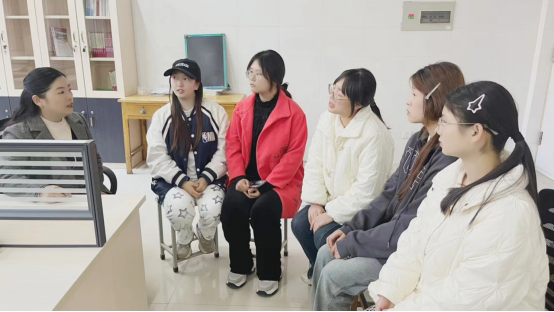 马玉娟老师在和员工谈心