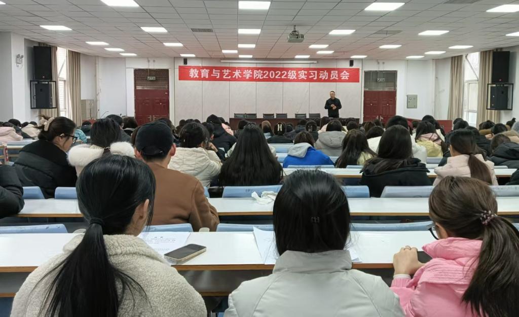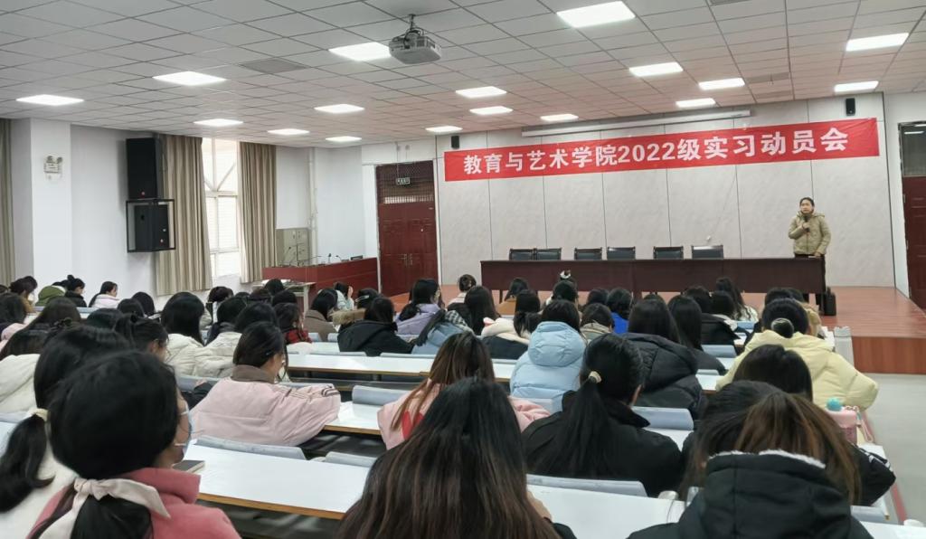 12月11日,伟德国际1946bv官网在拓新楼2楼阶梯教室分批次召开了2022级学前教育、小学语文教育、音乐教育、视觉传达设计(中外合作)专业实习动员会,各教研室主任、实习指导老师、辅导员和员工共计600余人参会。