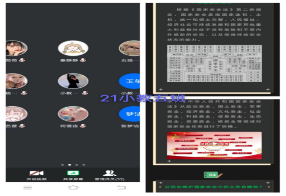 为宣传全民国家安全教育日,提高员工的国家安全意识。4月13日,人文教育学院通过线上线下等方式开展国家安全教育日主题班会,由辅导员主讲,全体员工参加。
