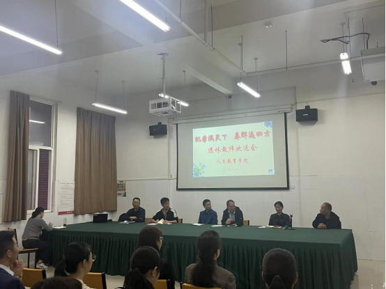 11月1日,人文教育学院在诚信2号楼D417会议室为齐霞、史官武教师举行欢送会。此次欢送会旨在向这些辛勤耕耘的教育工作者致以崇高的敬意,感谢他们为人文教育学院的发展倾注了一生的热情与智慧。
