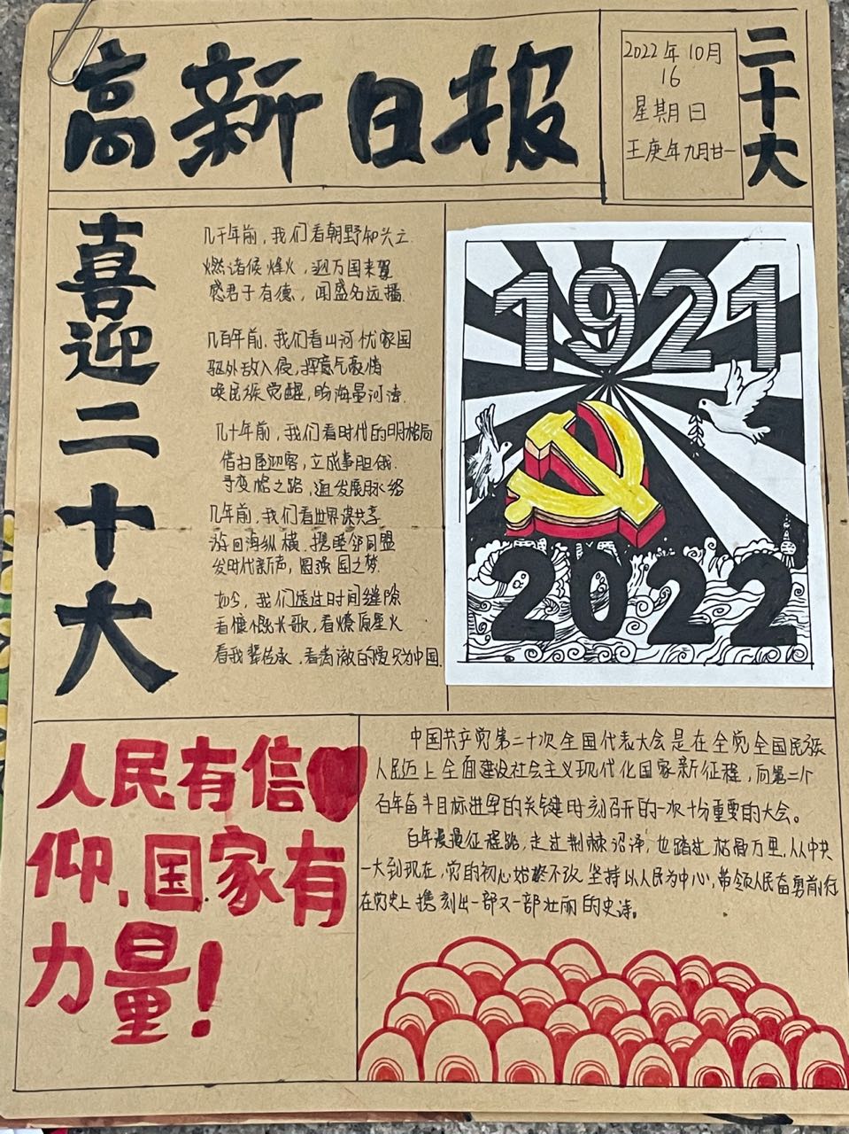 为深入贯彻党的二十大精神,引导同学们树立正确的社会主义核心价值观,将二十大学习融入到青年员工生活学习中去。10月24日,公司开展了“喜迎二十大,青春著华章”手抄报创作活动。