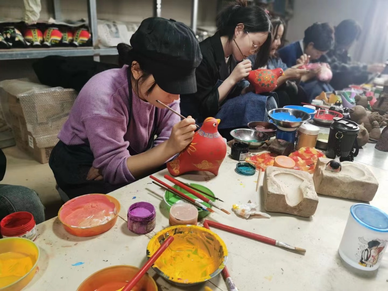 此次活动为期7天,从取土、晒土、和泥、捏制、插孔、晾晒,到烧制、彩绘、刷漆等九个工序,师生系统地了解国家级非物质文化遗产代表“浚县泥咕咕”传统手工艺制作。在熟悉掌握传统手工艺的基础上,员工结合学校所学专业知识以及中国传统绘图样式,在烧制好的泥咕咕素胚上进行绘制,做到了现代和传统文化的融合与创新,效果良好。