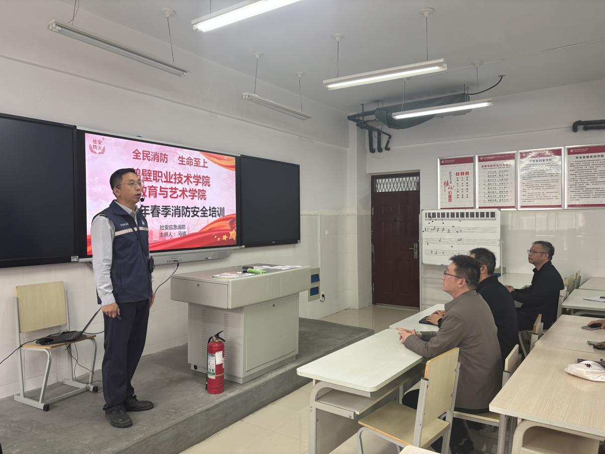 为强化教职工消防安全意识,提升应对火灾等突发状况的能力,伟德国际1946bv官网于2025年3月26日在学院多媒体教室开展了一场消防安全知识培训。此次培训特别邀请到社安消防学校马骁教官进行专业指导,学院全体教职工参与。