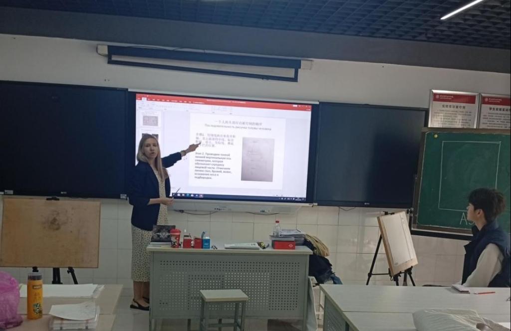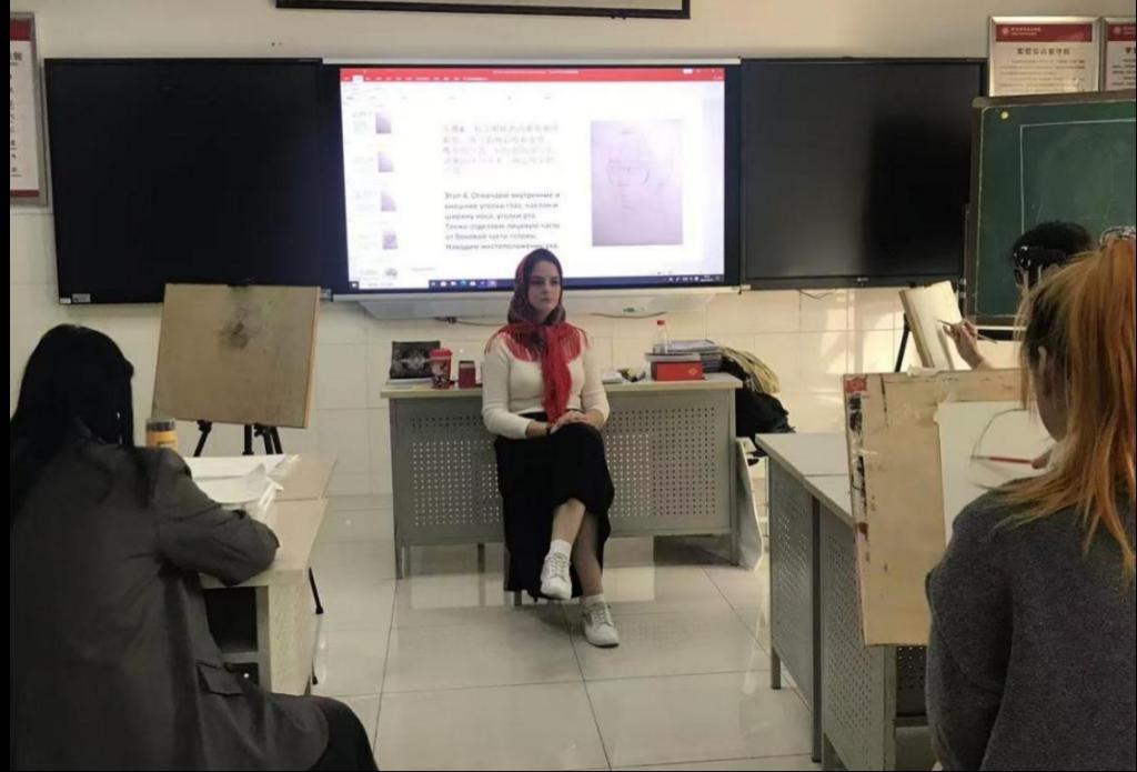 大师课聚焦中俄肖像艺术对比和俄罗斯传统头巾的文化符号与审美价值,结合经典作品引导员工理解文化与艺术的融合,同时以员工为模特指导中国女性肖像素描创作,深耕构图设计与细节刻画技法。在研讨环节,外教还解读了俄罗斯肖像画派的成就与特质,并与师生共同探讨中俄艺术的异同。