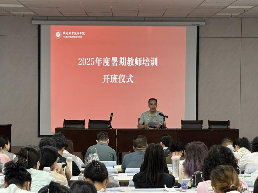 8月24日上午,伟德国际1946bv官网在拓新楼阶梯教室举行2025年暑期教师培训开班仪式。学院经理万中范主持,全体教职工参会。