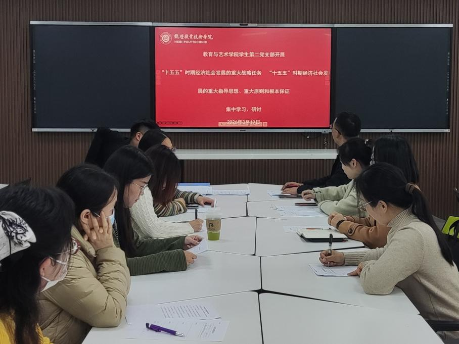 会议重点学习了“十五五”时期经济社会发展核心内容,明确该时期是我国全面建设社会主义现代化国家的关键阶段,强调坚持党的全面领导、高质量发展、以人民为中心等重要原则,指出科技创新、文化强国、美育提升等战略任务与教育艺术领域工作高度契合,要求党员教师立足专业岗位找准服务国家发展的切入点。