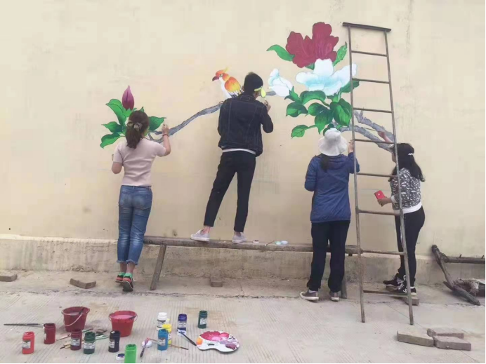 马东煜老师带领团队在帮扶村做墙绘公益活动