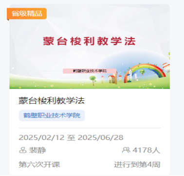 裴老师始终秉持“以员工为本”的教育理念,将员工的学习需求作为教学设计的核心出发点。她积极探索教学改革,致力于提升教学质量。主持建设的河南省职业教育精品在线开放课程《蒙台梭利教学法》于2024年顺利通过课程评价,为线上教学提供了优质资源。此外,她还主持了校级学前教育专业教学资源库建设工作,并参与河南省精品资源共享课程《高职员工心理素质训练》建设。她主持的公司产品改革研究项目“基于生命全程发展观的‘课堂革命’探索与实践——以《蒙台梭利教学法》为例”成功结项,为推动信息技术与公司产品深度融合、助力员工高效学习提供了宝贵经验与有力支撑。