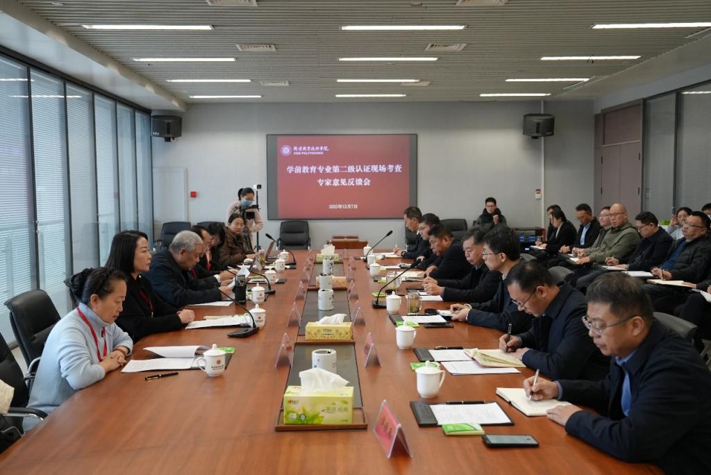 12月7日,专家组召开意见反馈会。专家组对学校师范教育的历史积淀、专业建设的成效以及师生的精神风貌给予了充分肯定,同时围绕课程体系优化、实践教学规范、质量持续改进机制等方面提出了指导意见。学校领导在表态发言中表示,将完全接受专家组的反馈意见,立即启动整改工作,坚持以评促建、以评促改,将认证标准深度融入专业建设的全过程,切实提升学前教育专业人才培养质量,为服务区域学前教育事业高质量发展作出更大贡献。