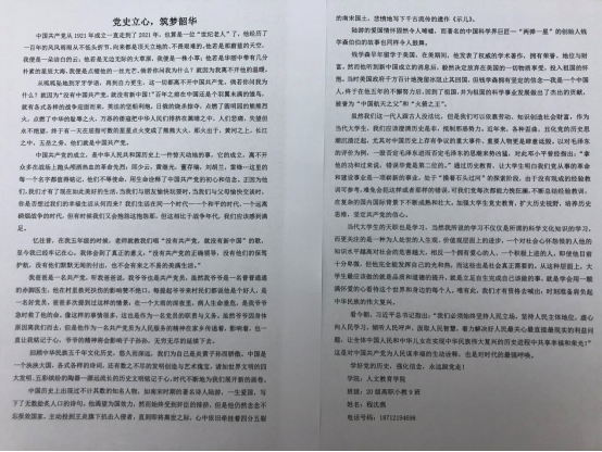 本次活动的参赛对象为全体在校生,共有106份作品入围决赛。决赛中邀请中文专业专家担任评委,分别对选手们有感而发的文字进行评阅,从中既能看到员工们叙述的在党助学、医疗等惠民政策执行下,自己及家人生活质量提高的图景,又能感到员工在党恩沐浴下溢于言表的喜悦之情。老师们也欣慰地发现选手们在学习中国共产党历史过程中,能自觉将个人理想同社会主义现代化建设紧密结合,自愿将个体力量汇聚到实现中华民族伟大复兴的征程中,这恰是百年党史的魅力所在。