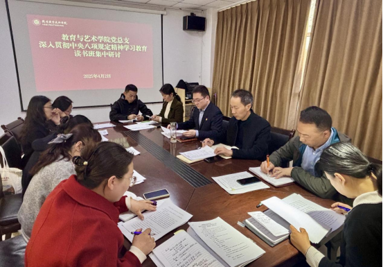 裴小鹏领学了《十八届中央政治局关于改进工作作风、密切联系群众的八项规定》,万中范及其他班子成员分别领学了《中共中央政治局贯彻落实中央八项规定实施细则》的五个部分。党总支副书记秦春风、教学科科长张慧、教工党支部书记刘燕在会上作交流发言,其他同志进行书面交流。