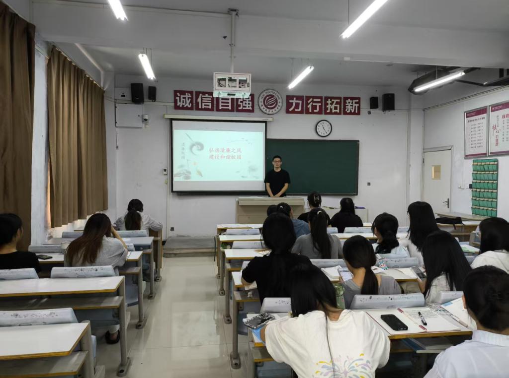 本次活动形式多样、亮点纷呈,主要从四方面进行,首先是“书画绘廉”:师生们踊跃创作蕴含“反腐倡廉”、“诚信做人”的书画、手抄报、漫画及海报作品,充分展示艺术才华与廉洁理念相融合。其次是“故事传廉”:“廉政故事分享会”巧妙嵌入日常教学,岳旸老师创新“专业+思政”双语微课堂,张瑞华老师组织师生共讲,杨雪老师聚焦“学习孔繁森精神,筑牢廉政防线”等,让历史清官与现代榜样的光辉事迹在课前五分钟焕发时代力量。第三“班会警廉”:各班辅导员利用晚自习召开主题班会,深度剖析考试作弊、处事不公等“微腐败”案例,强化员工的规矩意识。最后“影视润廉”:在员工劳动周期间组织观看《人民的名义》《永远在路上》等廉政影视作品,引发师生对廉洁修身的思考。