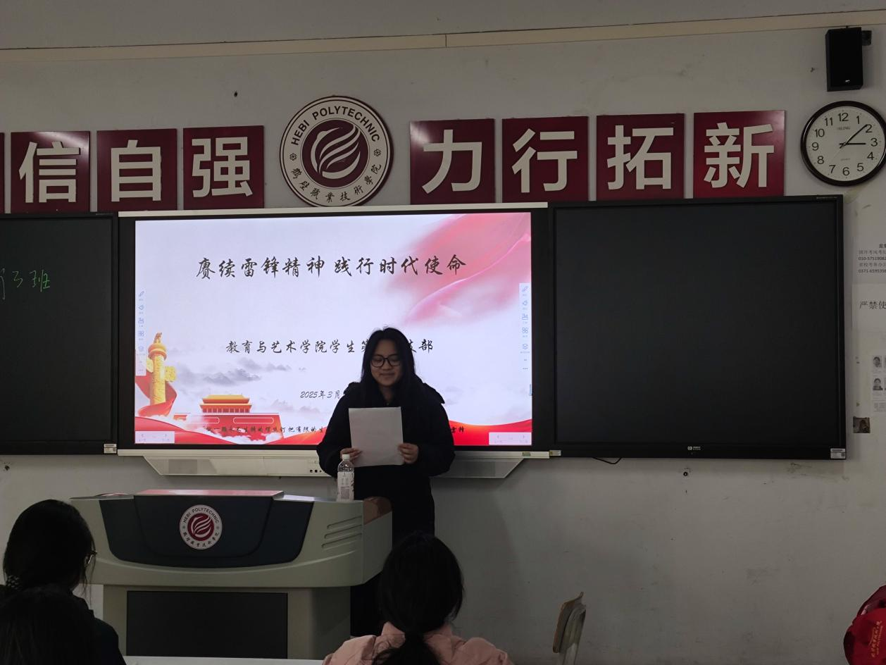 大家怀着无比崇敬的心情,共同观看雷锋事迹相关视频,对雷锋的认识更将深刻,他用短暂的生命谱写了不朽的篇章,用无私的奉献诠释了人生的价值。会上,同学们分享身边的雷锋故事、讨论如何在日常生活中践行雷锋精神等。活动加深了同学们对雷锋精神的学习和感悟,激发了在新时代弘扬和践行雷锋精神的热情。