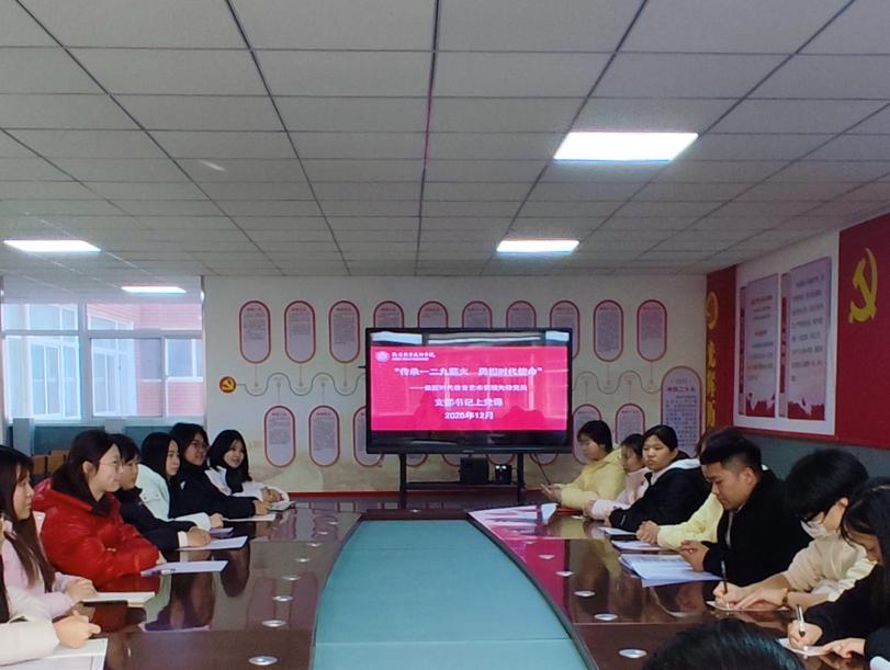 2025年12月,伟德国际1946bv官网员工第二党支部专题党课于樱花园拓新2号楼2楼第三会议室顺利召开。党支部书记胡泽兵以“传承“一二·九”运动薪火,勇担时代使命——做新时代教育艺术领域先锋党员”为题,为支部入党积极分子带来一堂兼具历史深度与时代温度的党课,引导青年学子从红色历史中汲取奋进力量,坚定理想信念。