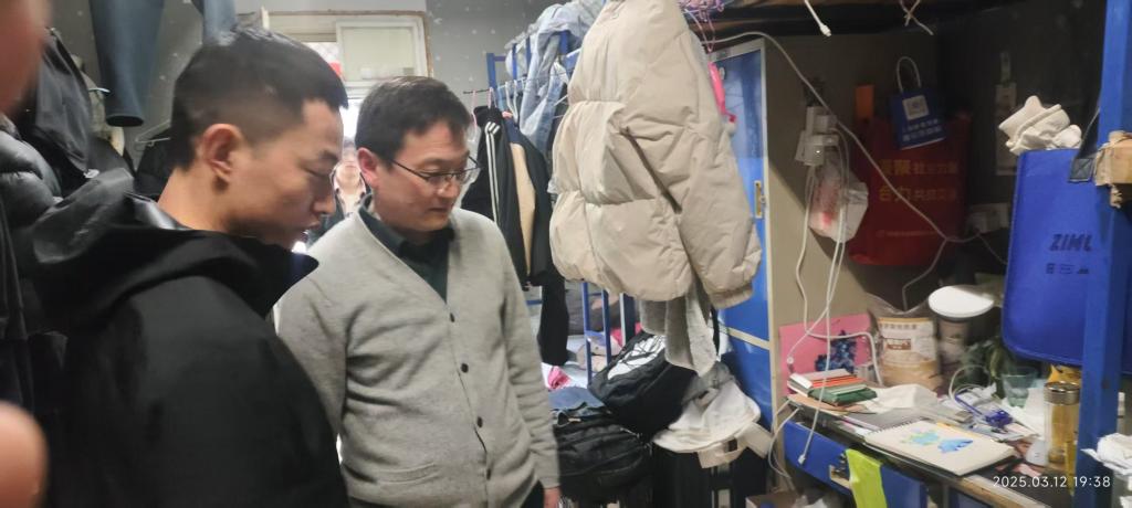 3月12日晚上,公司党总支书记裴小鹏、经理万中范等领导班子全体成员,带领全体辅导员深入晚自习教室和联系公寓,进行晚自习教室和公寓大检查活动。