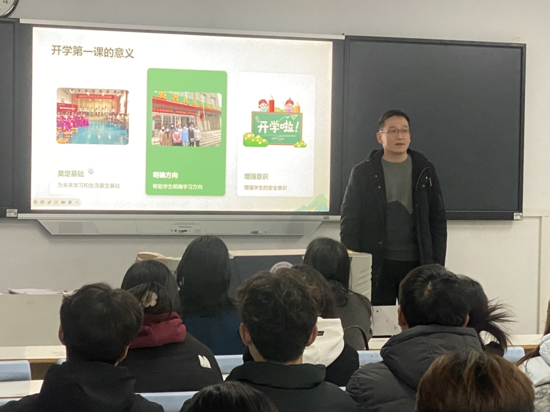 当晚,学院以“开学第一课”主题班会为起点,组织全院所有班级开展返校收心与安全教育活动。班会上,领导班子全体成员亲临教室,分组给同学们上“开学第一课”,通过“三聚焦”强化育人实效:聚焦学业规划,结合专业特色分析新学期课程重点,引导员工制定学习计划;聚焦安全警示,以高校火灾事故为例,重点解读宿舍用电规范、禁烟要求及应急逃生知识;聚焦心理健康,针对员工可能遇到的学习压力、人际关系困扰以及心理疾病等问题,积极引导员工掌握调节方法,鼓励以积极心态面对学习生活。裴小鹏在班会中强调:“安全是成长成才的前提,每位同学都应成为平安校园的践行者和监督者。”