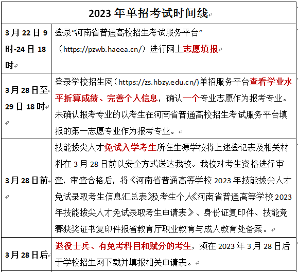 以下为2023年伟德国际1946bv官网人文教育学院单招相关的时间线,请各位单招考生对照个人情况,注意各个考试节点,避免错过考试报名等时间。
