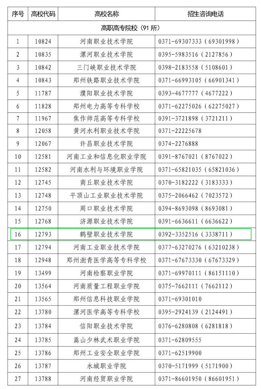 河南省2022年高职单招和技能拔尖人才免试入学招生院校名单